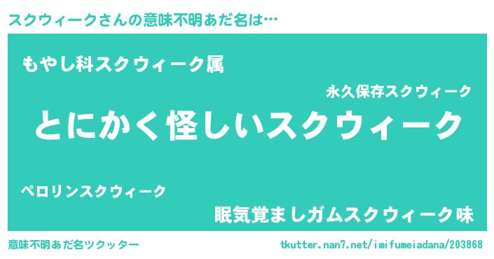 | ポケモン風あだ名 | 『ヒスクウィーク』『スクキング』 |