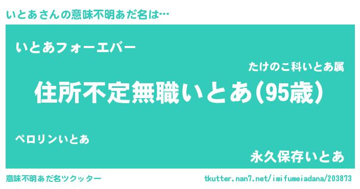 | 男性向けラノベタイトル風あだ名 | 『魔弾の王といとあ』『イトアスレイヤー』 |