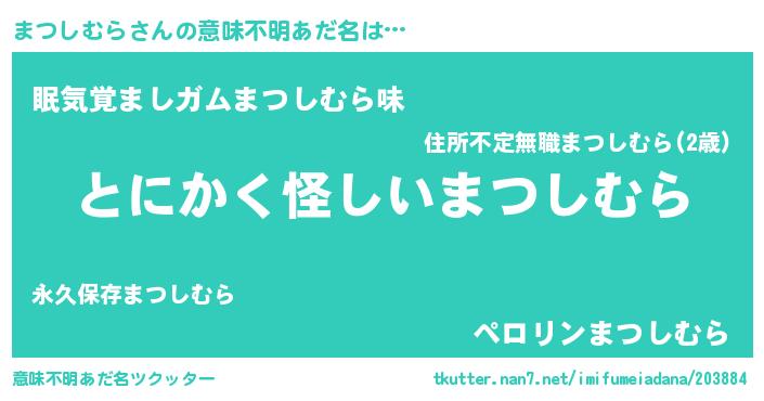 | 男性向けラノベタイトル風あだ名 | 『まつしむらの嫁は女の子じゃないと思った?』 |