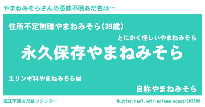 | ヘコむあだ名 | 『やまねみそら(笑)』『やま太郎』 |