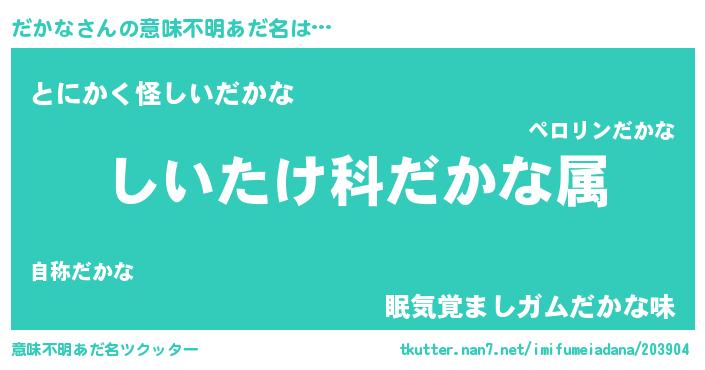 | 料理風あだ名 | 『だかなごはん』『だかなの豆乳スープ』 |
