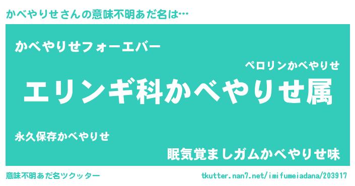 | 料理風あだ名 | 『かべやりせごはん』 |