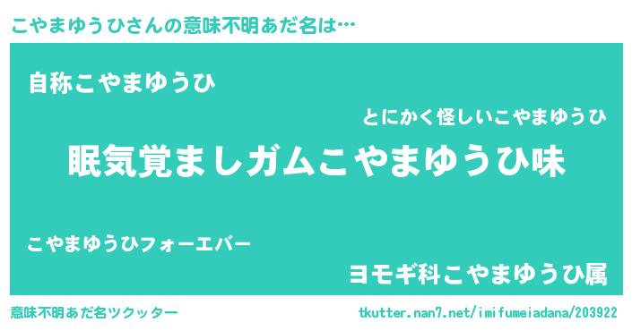 | ヘコむあだ名 | 『こやを』『豆乳』『こやっふぃ~』 |