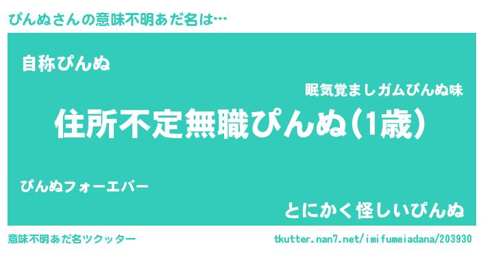 | 女子向けラノベタイトル風あだ名 | 『悪役ぴんぬに転生したようですが、知った事ではありません』 |