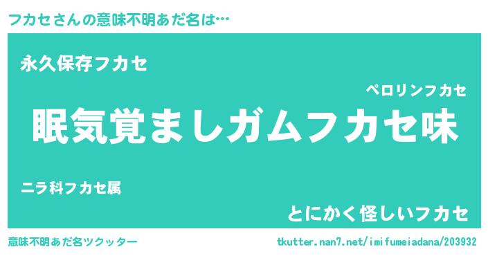 | ヘコむあだ名 | 『フカセ(震え声)』『フカぷりん』 |