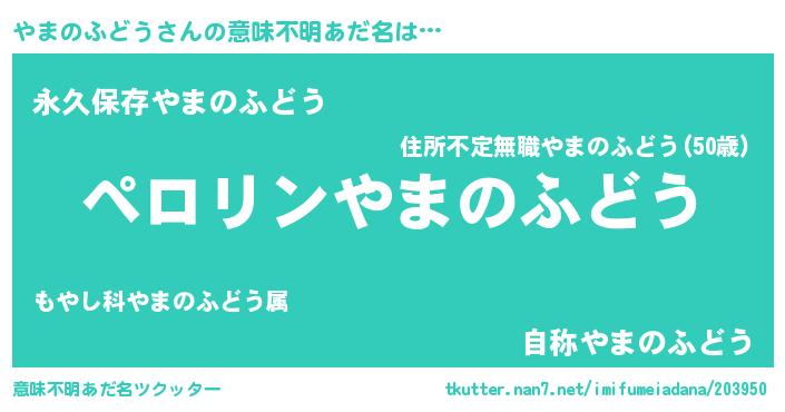 | 男性向けラノベタイトル風あだ名 | 『やまのふどうの憂鬱』 |