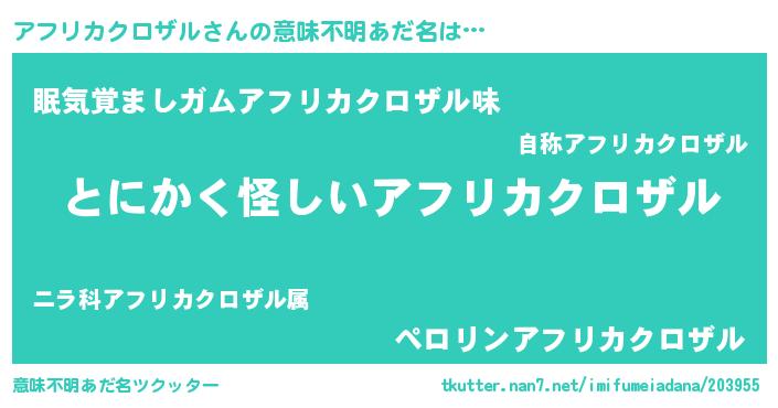 | 胡散臭い通販商品みたいなあだ名 | 『信頼と実績のサプリメント…その名も「アフリカクロザル」』 |