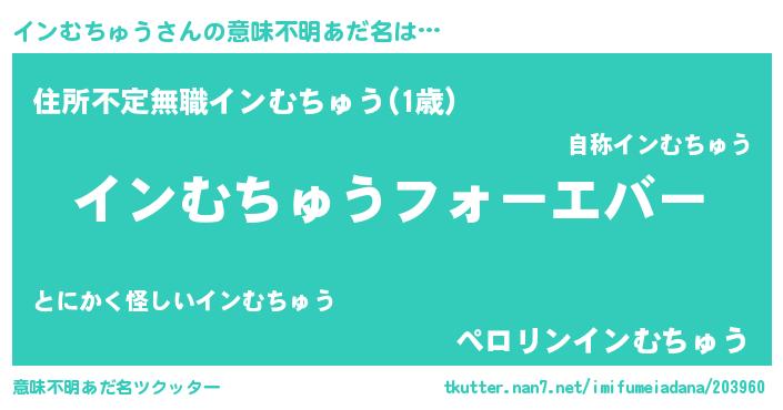 | 欧米人風あだ名 | 『インむちゅうクリステル』 |