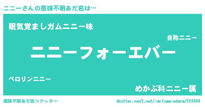 | ヘコむあだ名 | 『豆乳』『ニニっふぃ~』『ニニを』 |