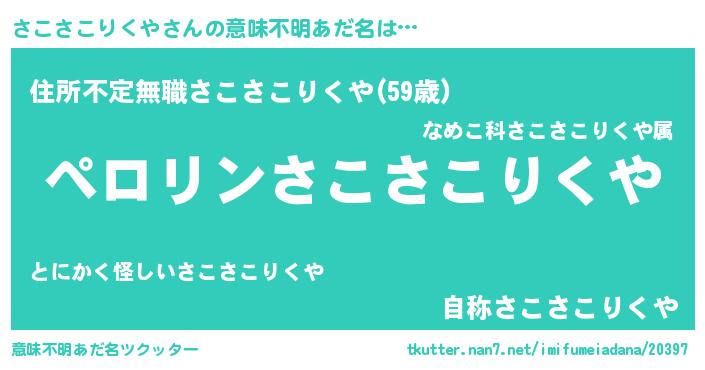 | 胡散臭い通販商品みたいなあだ名 | 『億万長者になれる霊験あらたかなお札…その名も「さこさこりくや」』 |