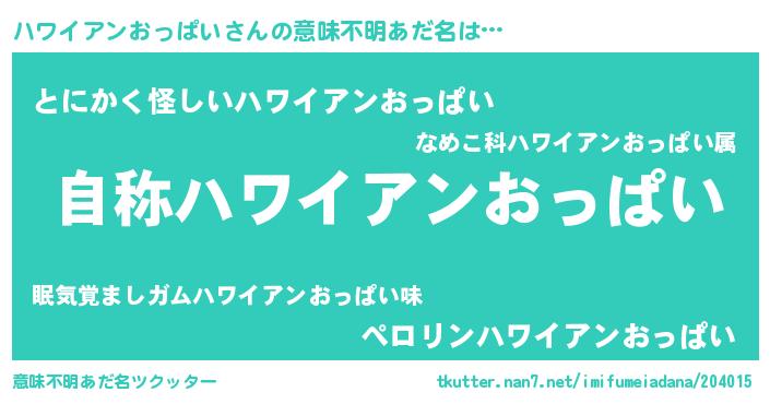 | 恥ずかしいあだ名 | 『ハワイアンオッパイデラックス』 |