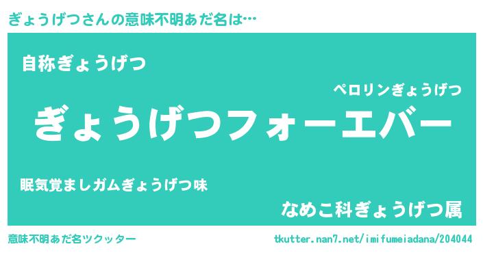 | 欧米人風あだ名 | 『ぎょうげつクリステル』 |