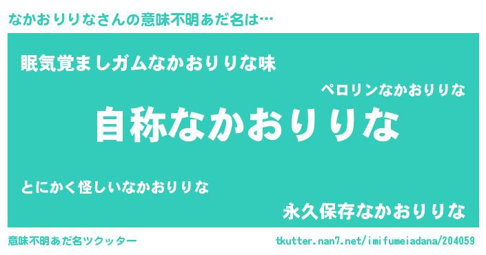 | 男性向けラノベタイトル風あだ名 | 『Re:なかおりりなから始める異世界生活』 |