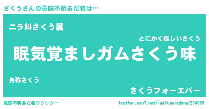 | ヘコむあだ名 | 『牛乳』『さくぷりん』『さくにー』 |