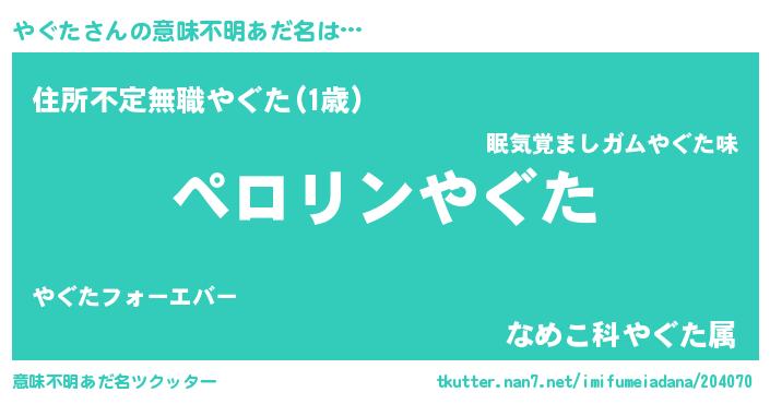 | 男性向けラノベタイトル風あだ名 | 『やぐたの憂鬱』『ヤグタスレイヤー』 |