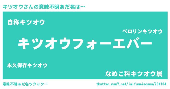 | ヒーロー風カッコイイあだ名 | 『ウルトラキツオウマン』『ネオキツオウ』 |