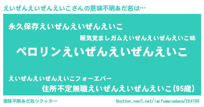 | 男性向けラノベタイトル風あだ名 | 『えいぜんえいぜんえいこの憂鬱』 |