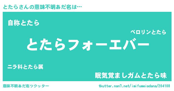 | 欧米人風あだ名 | 『アンジェラ・とたら』『ダニエルとたら』 |