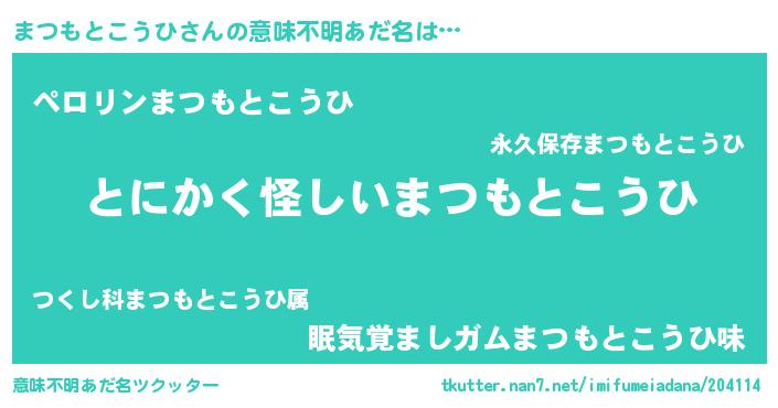 | ポケモン風あだ名 | 『ヒマツモトコウヒ』『マツチュウ』 |