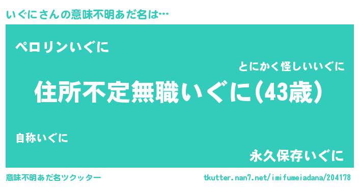 | 男性向けラノベタイトル風あだ名 | 『この素晴らしい世界にいぐにを!』 |