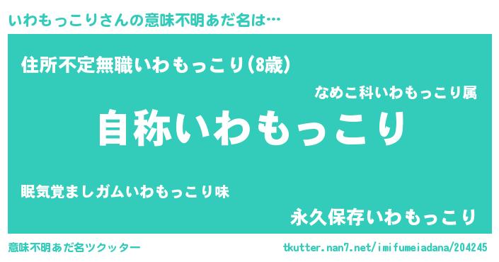 | 男性向けラノベタイトル風あだ名 | 『Re:いわもっこりから始める異世界生活』 |