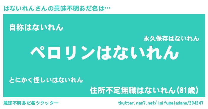 | 男性向けラノベタイトル風あだ名 | 『ハナイレンアートオンライン』 |