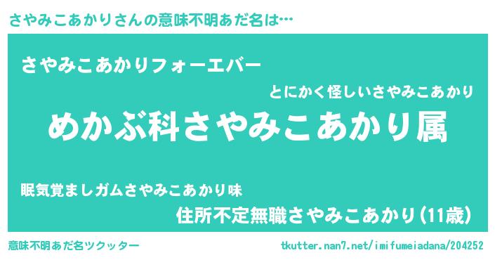 | 男性向けラノベタイトル風あだ名 | 『サヤミコアカリスレイヤー』 |