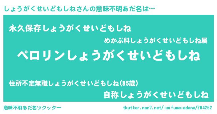 | 恥ずかしいあだ名 | 『プリティーしょうがくせいどもしね』 |