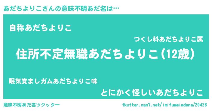 | 男性向けラノベタイトル風あだ名 | 『この素晴らしい世界にあだちよりこを!』 |