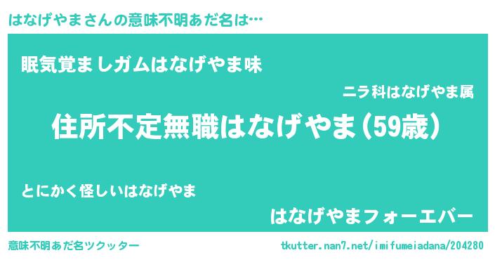 | 料理風あだ名 | 『はなげやまのカルパッチョ風』 |