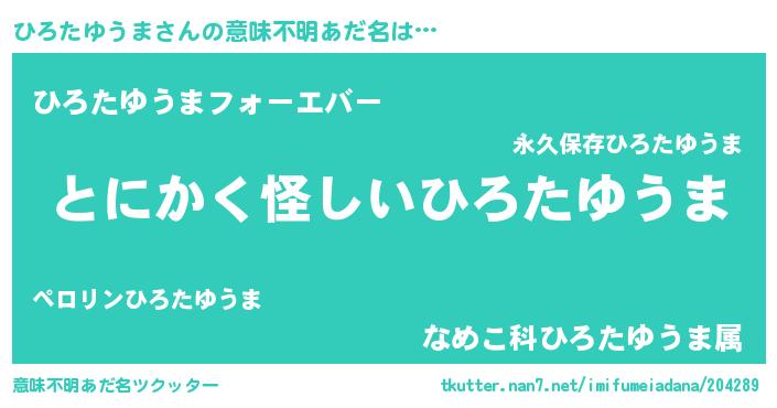 | 女子向けラノベタイトル風あだ名 | 『ひろたゆうまは平凡を望む』 |