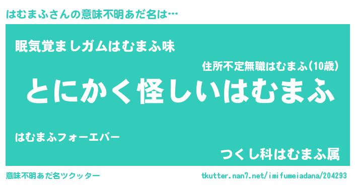 | ポケモン風あだ名 | 『ヒハムマフ』『ハックウザ』 |