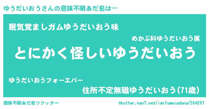 | 欧米人風あだ名 | 『ウサインゆうだいおう』 |