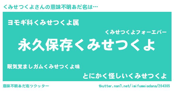 | 胡散臭い通販商品みたいなあだ名 | 『前代未聞の健康食品…その名も「くみせつくよ」』 |
