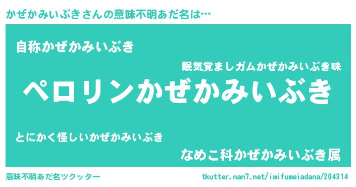 | 男性向けラノベタイトル風あだ名 | 『カゼカミイブキアートオンライン』 |
