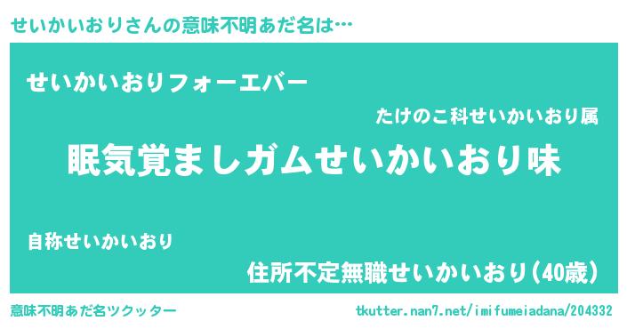 | 欧米人風あだ名 | 『ダニエルせいかいおり』 |