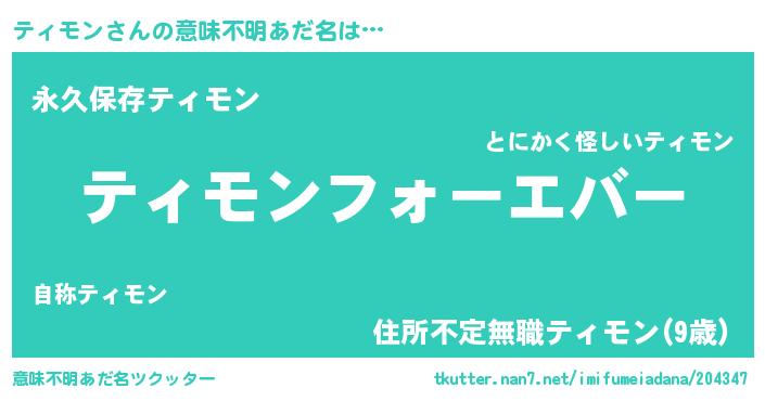 | 欧米人風あだ名 | 『ティモンクリステル』 |
