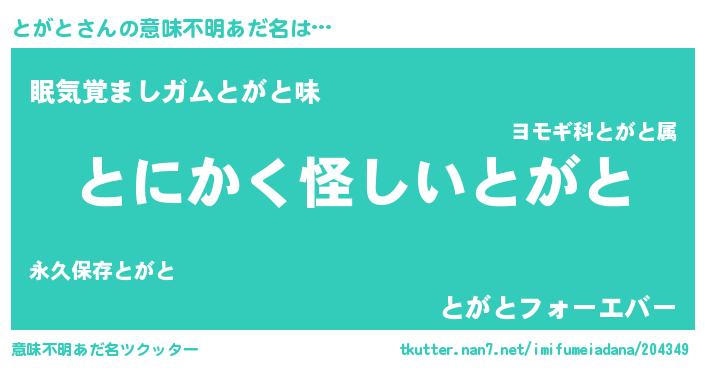 | 胡散臭い通販商品みたいなあだ名 | 『伝統あるサプリメント…その名も「とがと」』 |