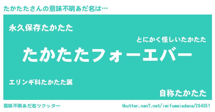 | 欧米人風あだ名 | 『たかたたクリステル』 |