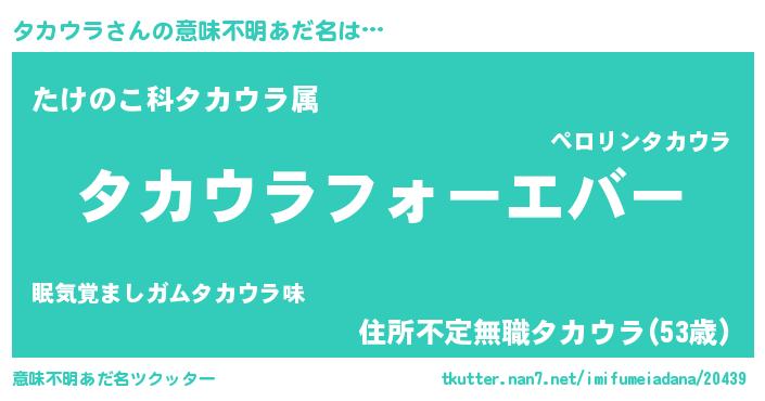 | 欧米人風あだ名 | 『タカウラ・ステッグマイヤー』 |