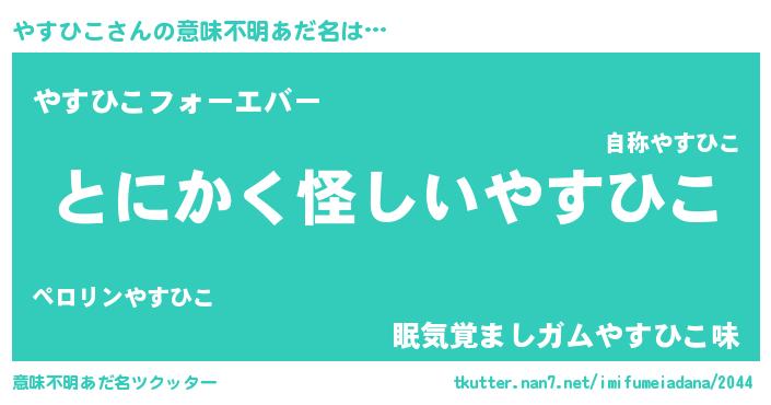 | 男性向けラノベタイトル風あだ名 | 『やすひこの嫁は女の子じゃないと思った?』 |