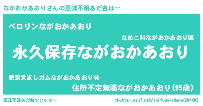 | 胡散臭い通販商品みたいなあだ名 | 『来世でも幸せになれる健康食品…その名も「ながおかあおり」』 |