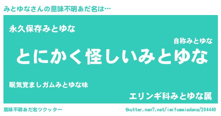 | 男性向けラノベタイトル風あだ名 | 『ダンジョンにみとゆなを求めるのは間違っているだろうか』 |