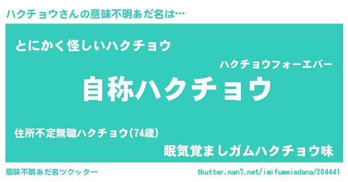 | ヘコむあだ名 | 『ハクお』『豆乳』『ハクふぇ~』 |