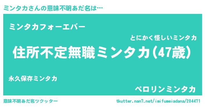 | ポケモン風あだ名 | 『ミーンイ』『ミンタダネ』 |