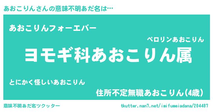 | 欧米人風あだ名 | 『トリンドルあおこりん』 |