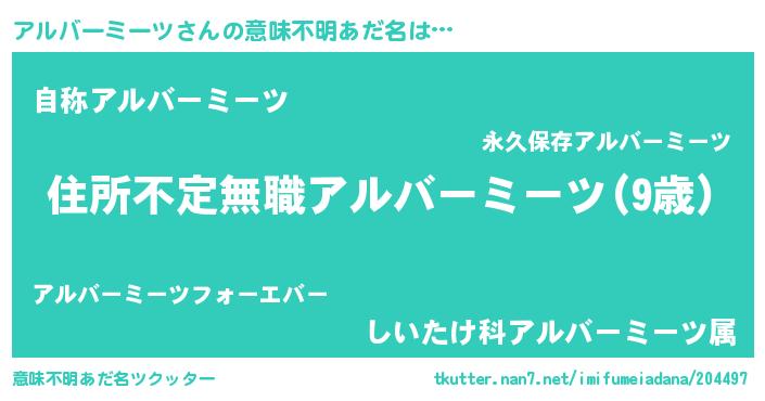 | ヘコむあだ名 | 『アルバーミーツ(笑)』『つくし』 |