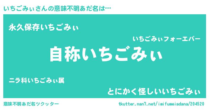 | 伝説のあだ名 | 『聞きしに勝る勇者いちごみぃ』 |