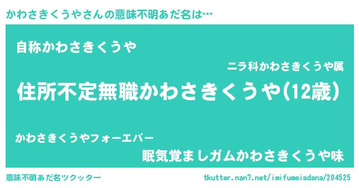 | 男性向けラノベタイトル風あだ名 | 『緋弾のカワサキクウヤ』 |