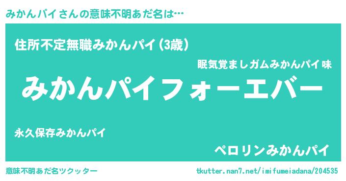 | 男性向けラノベタイトル風あだ名 | 『緋弾のミカンパイ』『みかんパイの憂鬱』 |